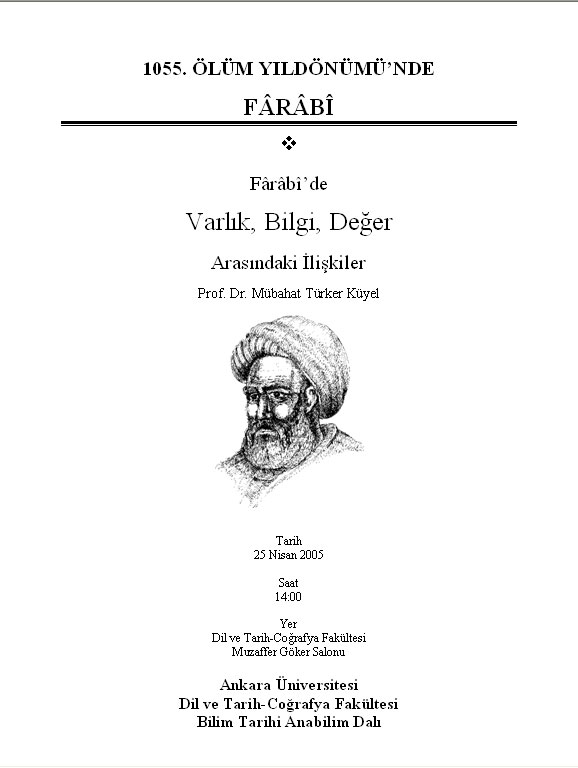 Konferans: Mübahat Türker Küyel, Fârâbî'de Varlık, Bilgi, Değer Arasındaki İlişkiler, 25 Nisan 2005,